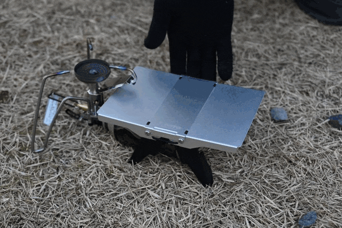 天板は必要最低限ですが、コーヒーやカップラーメン、クッカー調理をソロで楽しむには十分な広さ。実際に湯を沸かしながらカップ麺を置いてみても窮屈さはなく、ちょっとした“自分だけのキッチン”感があっていい感じでした!