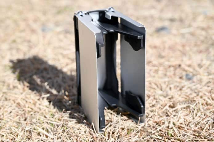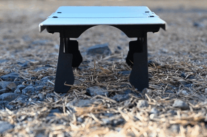 まず、私の心をときめかせてくれたのがこの見た目。天板にはアルミニウム合金、脚部分にはナイロン樹脂が使われていて、なんだか男心をくすぐるギア感があります。