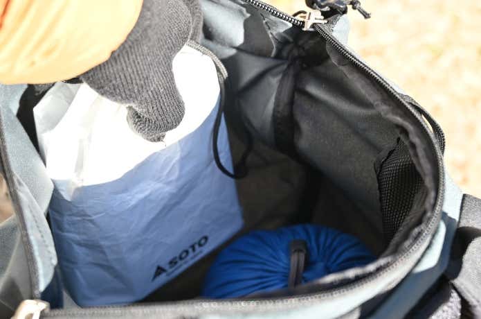 さらにトライトレイルに付属されている収納袋にピッタリ収まってくれます。ストーブとテーブルのデッドスペースを限りなく減らしてバックパックの隙間に収めることができます。