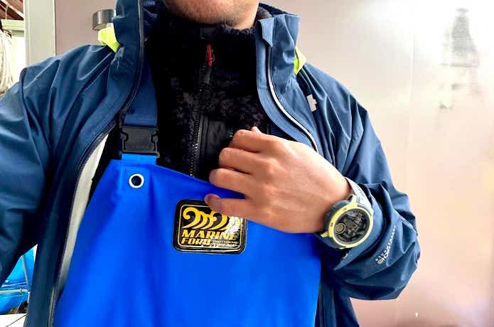 この日は釣り船で中乗り業務があり、インナーにはワークマンのメリノウール100%長袖クルーネック。
