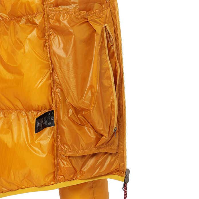 高品質羽毛SPDX(ダウン93%-フェザー7% 860FP)を80g封入し、生地には10Dと薄手の生地を採用することで、保温性と軽量性に特化したダウンウェアです。