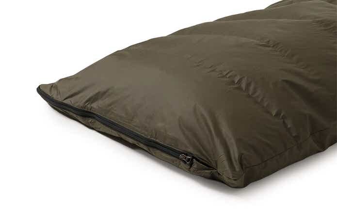 ファスナーはL字になっており、足の先まで開閉が可能! 寝袋だと暑いときや、家族で使う場面ではファスナーをフルオープンにして掛け布団としても使えちゃいます。