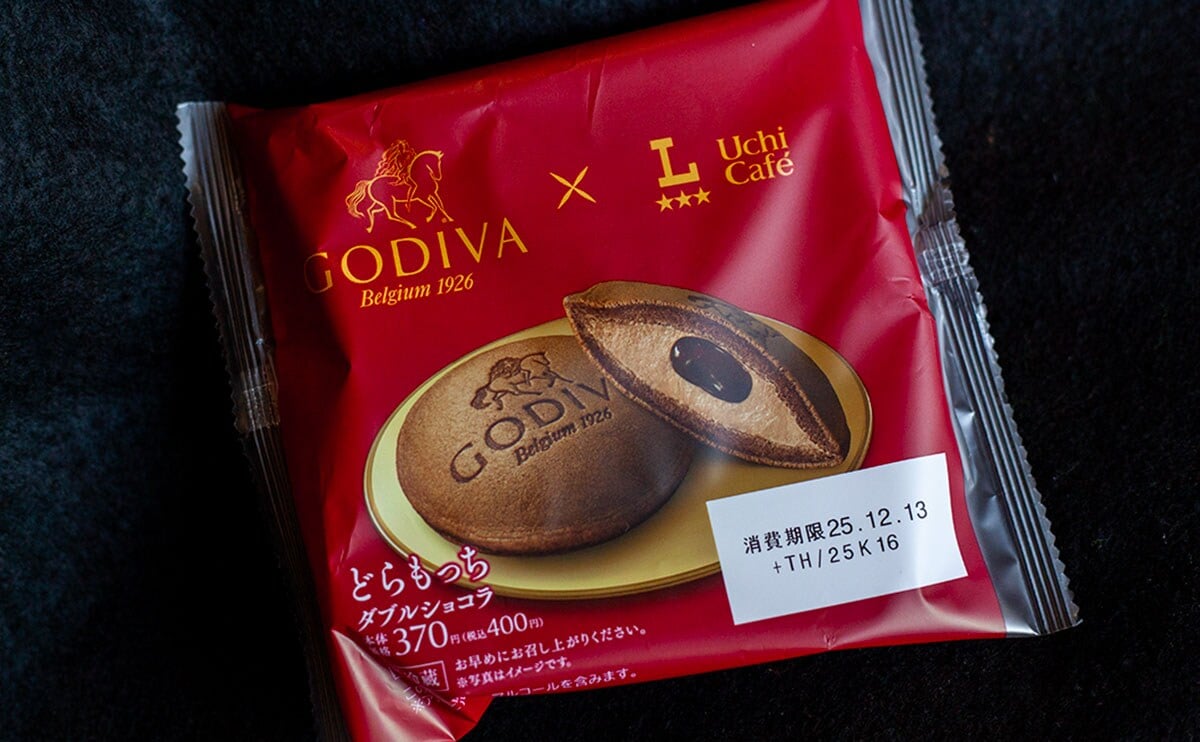 2025年12月9日(火)、ローソンは「GODIVA」とのコラボ商品を3品発売しました。今やすっかりおなじみのコラボですが、今回もコラボ「どらもっち」が登場したんです! それが、「Uchi Café×GODIVA どらもっちダブルショコラ」(税込400円)。パッケージからも、高級感、特別感が漂いますね。