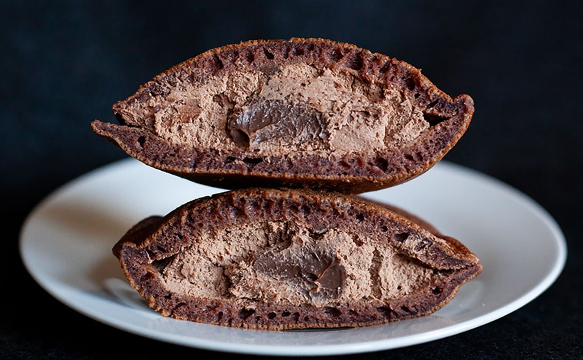 この商品は2層仕立てになっているのが特徴。生地の中には、濃厚なチョコソースと、くちどけなめらかなチョコクリームが入っています。