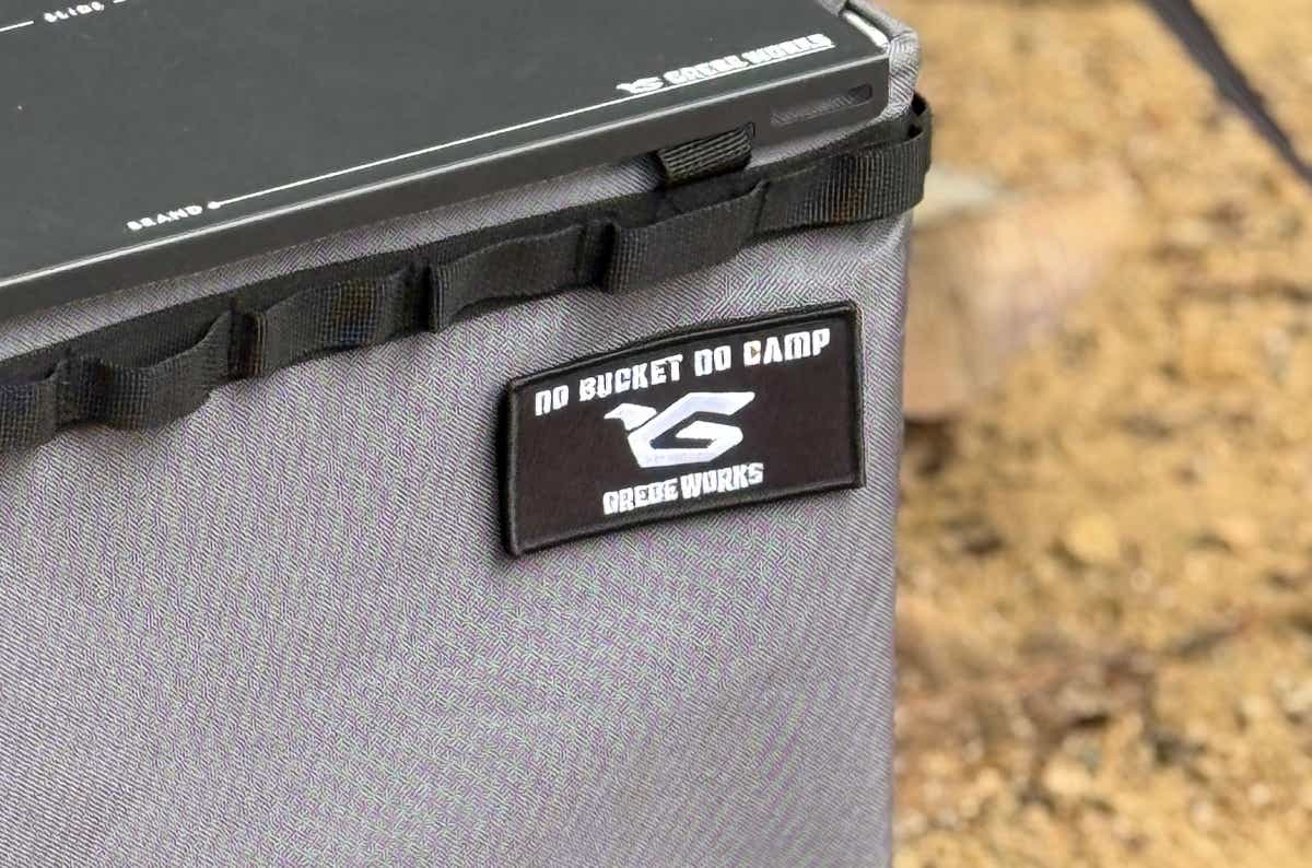 自立し、キャンプでも家でも使いやすい人気アイテム「ワンタッチバケット」を、グリーブワークスがアレンジした特別モデルです。