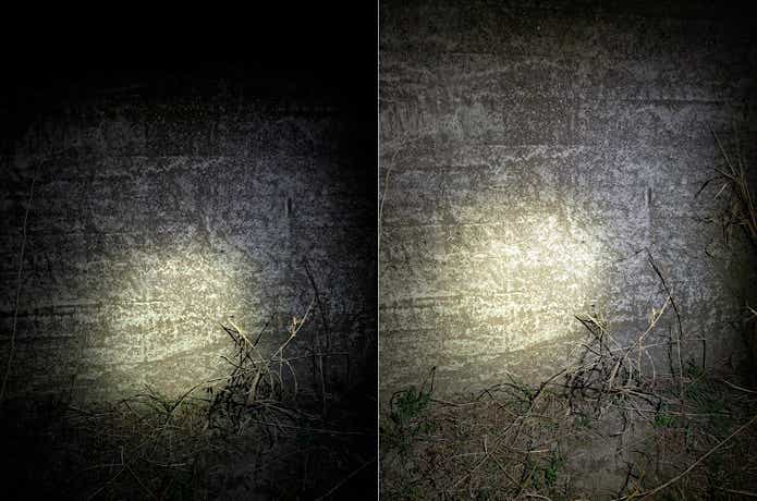 右:20ルーメンの光 / 左:1000ルーメンの光