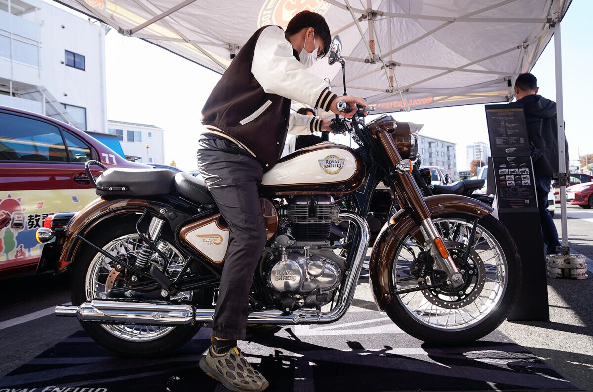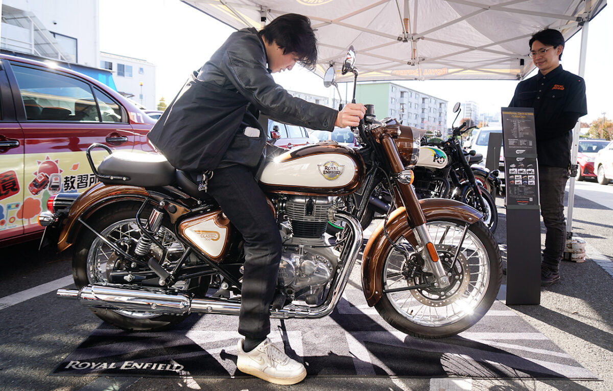 欲しいバイクと毛色は違うものの、ロイヤルエンフィールドの放つデザインの異彩さに引き寄せられて跨り体験に参加してくれた。