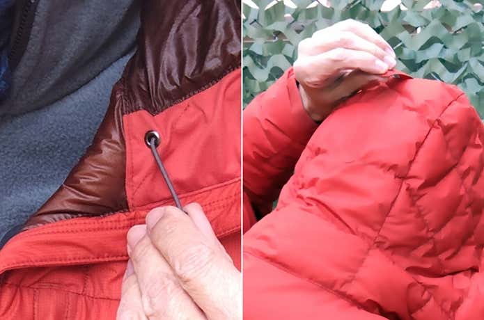 ただ、ドローコードが内側にあるため、微調整のたびにフロントジッパーを開けなければならず、やや手間がかかります。おそらくコード穴から水が入るのを防ぐための設計なので、やむを得ないところでしょう。
