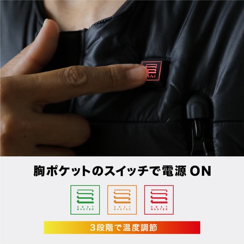 南海部品が展開する電熱ウエアで、袖のあるジャケットタイプと、袖のないベストタイプの2ラインナップとなっている。立体裁断によるフィット感と薄手設計により、アウターの下に着ても動きを妨げない。ジャケットは両肩・両胸・背中の5か所にヒーターを内蔵し、ベストは両胸と背中の3か所を温める。