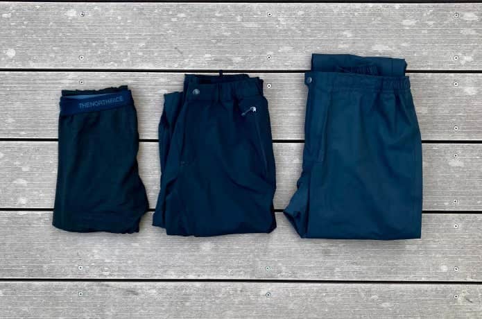 休憩時や寒さが厳しい状況下での防寒には、オーバーパンツやシェルパンツが必須。稜線上などで着用することで冷えを防ぐことに一役買います。