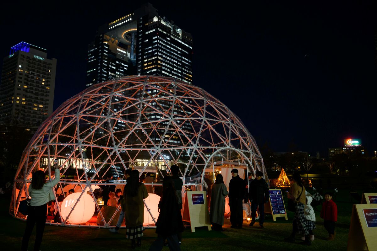 夜になると雰囲気は一変。琥珀色の照明に包まれた「NIGHT LIVING DOME」となり、ホットドリンクを片手に音楽を楽しめる空間になります。12月12日(金)や20日(土)にはDJタイムも予定されており、公園とは思えない優雅な時間を過ごせそうです。
