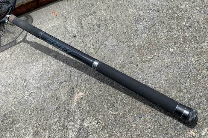 持ち手が60cmあるので、ロングロッドを使っていても難なくランディングが行えます。