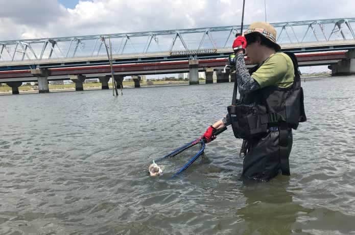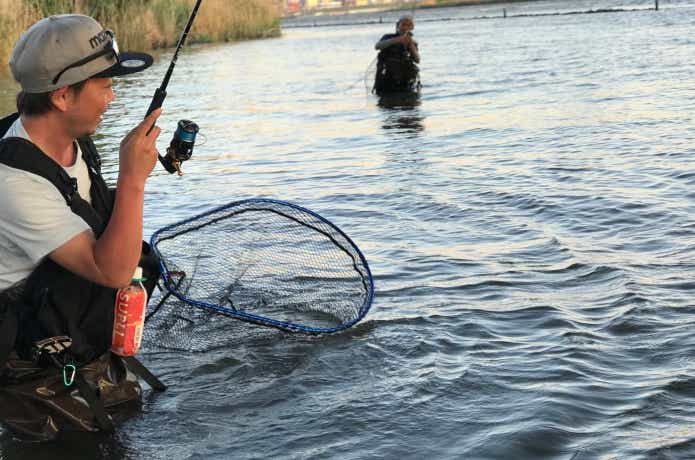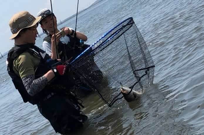 ウェーディングはアングラーの動きも制限され、魚が体の近くで暴れ回るため、ランディングネットは“身の安全を確保するアイテム”にもなります。