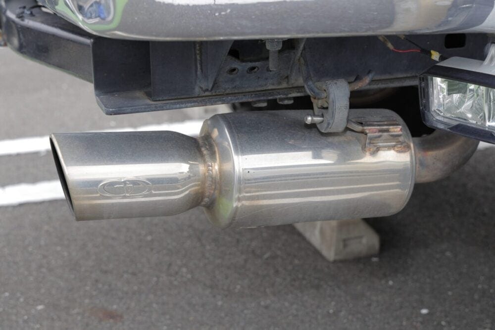 エンジンルームは特にカスタムなしだが、マフラーはガナドールをチョイスしている。