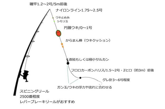 グレと同じようにウキフカセ釣り、オーソドックスな半遊動ウキ釣り仕掛けで狙えます。