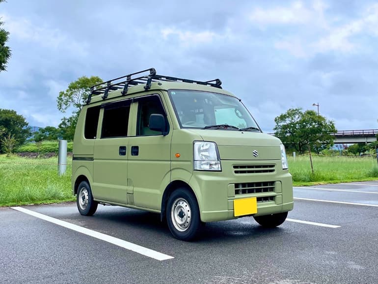 車中泊仕様にしたエブリイの外装は