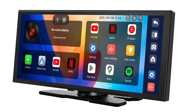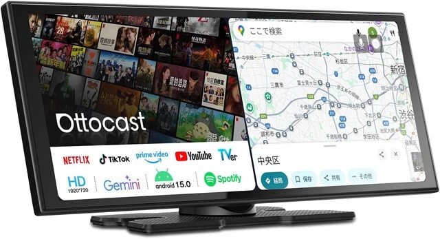 OSにAndroid 15を搭載し、各種エンタメアプリからマップアプリでのルート案内まで、これ一台でOK。「CarPlay」と「Android Auto」に対応しており、画面を左右2分割して片側は動画再生、もう片側はルート案内といった表示も可能。ダッシュボードに設置するだけで、細かい配線接続が不要なのも注目です!