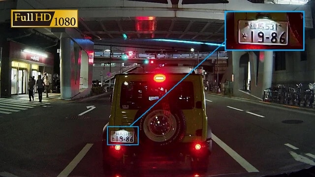 フロント、リアどちらも200万画素のフルHDカメラを採用。これにより日差しの強い日中でも反射に影響されることなくナンバープレートもしっかり撮影。「ナイトサイト」機能が搭載され、夜間走行でも鮮明に撮影可能。