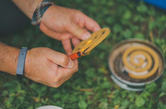 蚊取り線香を燃やすとピレスロイド系の有効成分が空間内に広がり、煙の行き渡る範囲の蚊を退治できます。蚊を寄せ付けない効果もあります。