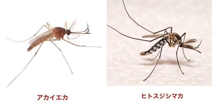 日本には、100種類ほどの蚊が生息していますが、蚊は「ハエ目カ科」に含まれる昆虫で、広い意味ではハエの仲間。その中でも、私たちがよく悩まされるのは「イエカ」と「ヤブカ」に含まれる2種類です。