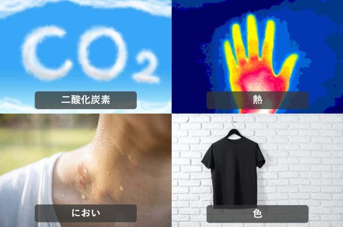 「二酸化炭素」 「熱」 「におい」 「色」で吸血対象を判別