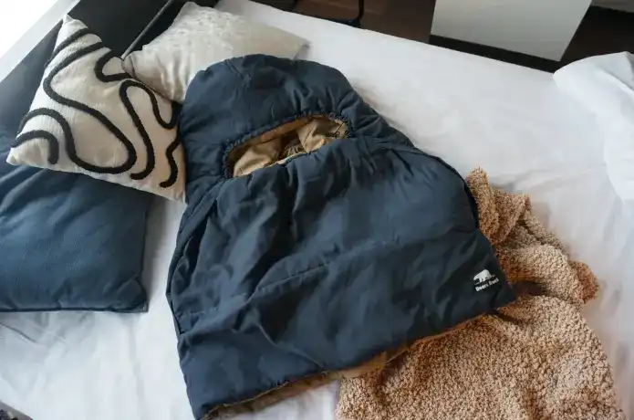 寝袋発想でしっかり暖かい。寝室になじむ新色