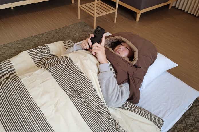 肩の冷えに悩まない。おうち快眠を叶える、“かぶれる寝袋”「でっかぶるん」新色登場