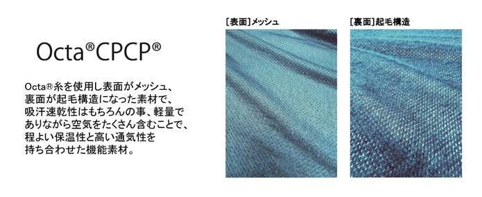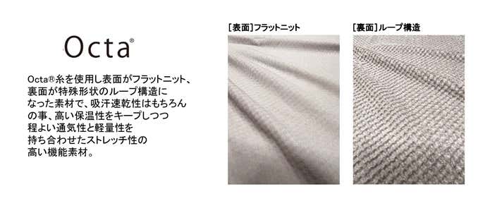 今回リリースされたミドルレイヤー(中間着)は、吸汗速乾性や軽量性、保温性、通気性など、様々な機能をあわせ持つ「Octa®」素材を採用。