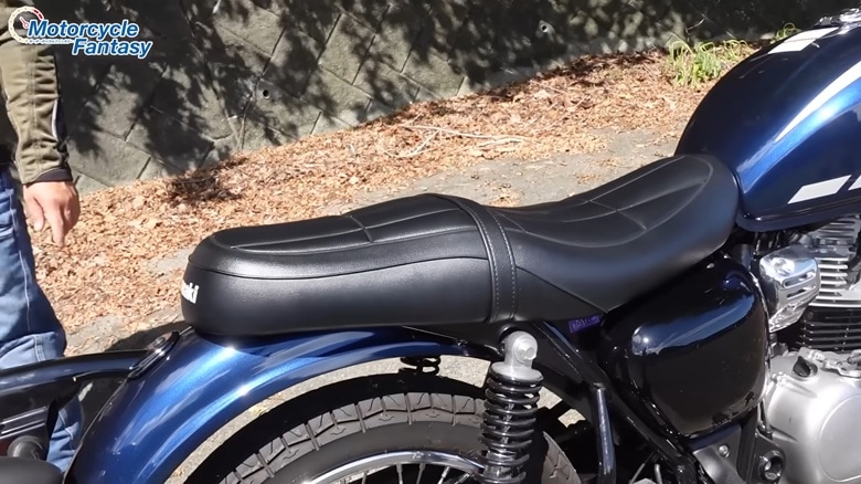 燃料タンクはパッと見では前身モデルのエストレヤと同じように見えるが、11ℓの容量を持つ専用デザインのタンクを採用。シートはライダー&パッセンジャー一体型で、全体的に丸みを帯びたフォルムを採用。写真の2025年モデルはボディカラーの違いによりシートもカラーが異なるという、細かい配慮も特長だ。