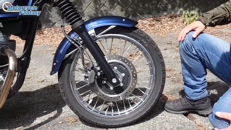 フロント18インチ、リア17インチという、安定性重視のスチール製スポークホイールを採用。タイヤサイズはフロント90/90-18、リア110/90-17をそれぞれ履く。