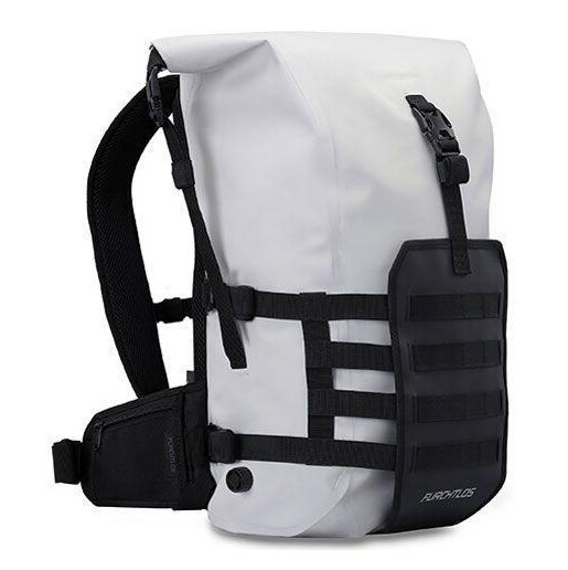バッグ上部をロールして閉じる防水性の高いバックパック。拡張システムによりヘルメットを固定することもできる優れもの。さらに、バックパック内部には取り外し可能なPCオーガナイザーが付属しているため、小物やPCの収納がしやすくなっている。
