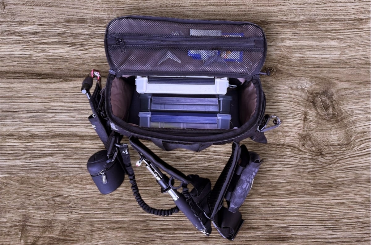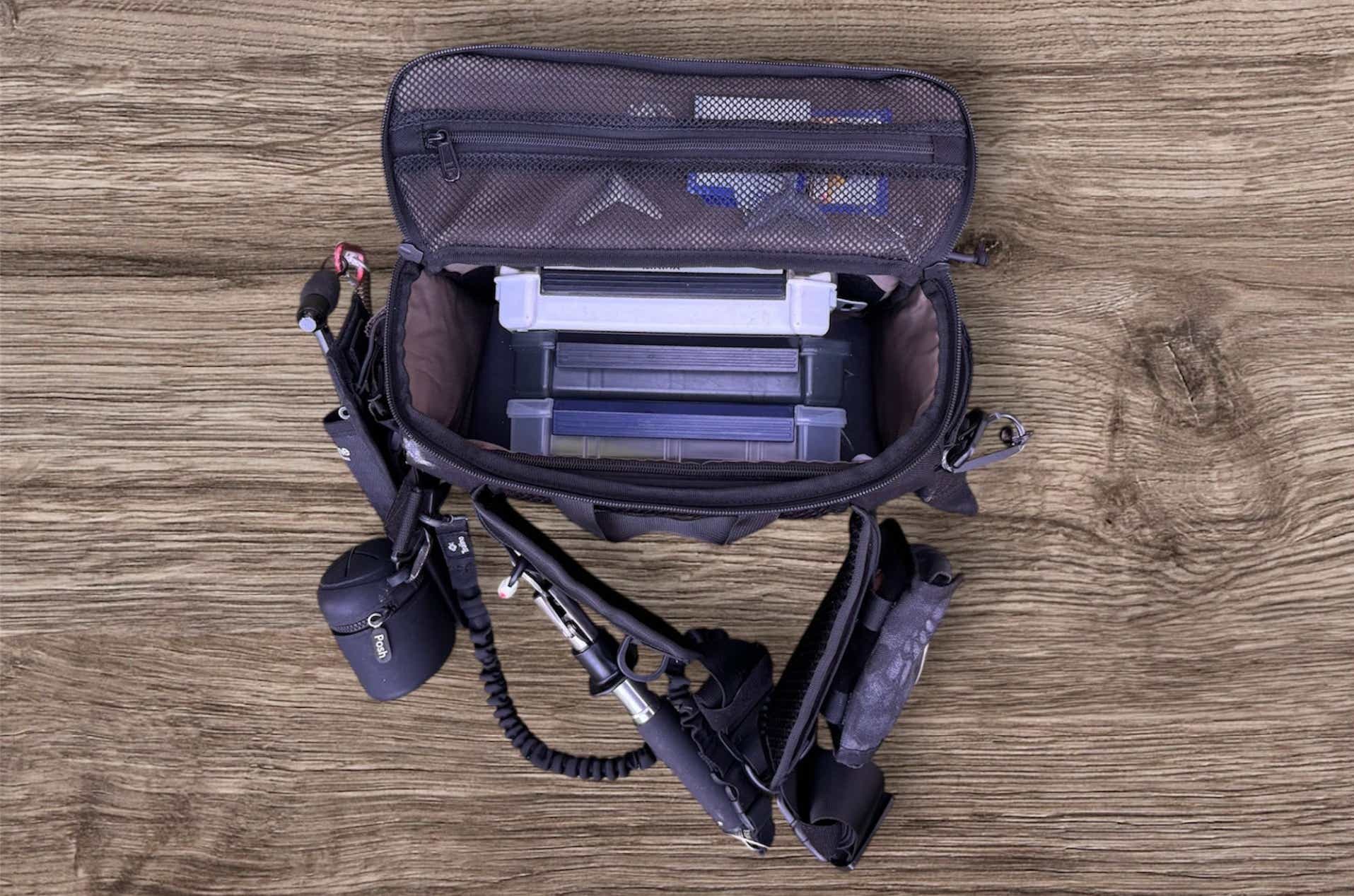 筆者はここにスナップ類やコンデジ、さらに撮影用の照明を入れて活用しています。