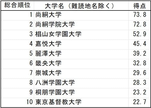 調査は、高校・大学生を含む全国のZ世代(29歳以下)1000人を対象に、11月16日〜21日に実施。予備調査で選定した30大学について、それぞれの「難読度」と「漢字の難しさ(難漢度)」を評定してもらった上で、漢字名に読み仮名を振ってもらい、その結果から総合ランキングを出した。国公立大学は既知の地名などが多いため難読度は低かったようで、私大のみが選択肢になった。