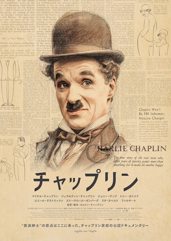山高帽とちょび髭がトレードマークの“放浪紳士”に扮し、庶民の哀愁や社会風刺を織り込んだ数々のドタバタ喜劇を送り出したチャーリー・チャップリン。そのルーツを、彼の子どもたちと著名人の証言ならびにさまざまな映像を織り交ぜて紐解いたドキュメンタリー「チャップリン」が、12月19日(金)より角川シネマ有楽町ほか全国で順次公開される。アザービジュアルと著名人のコメントが到着した。