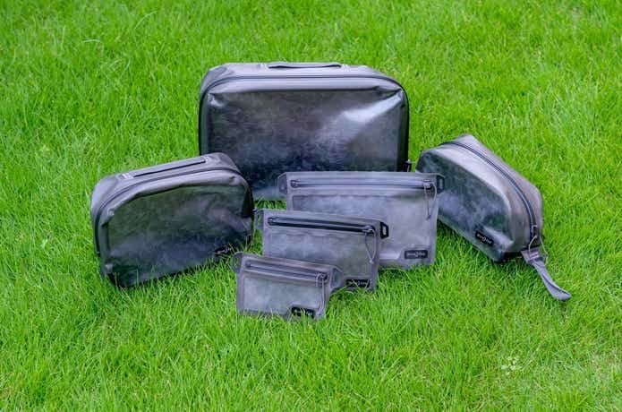 サイズは6種類あり、一番小さいウォレットは財布としてはもちろん、薬やアクセサリー、SDカード、充電ケーブルなど濡れると困る小物類を入れるのに最適。