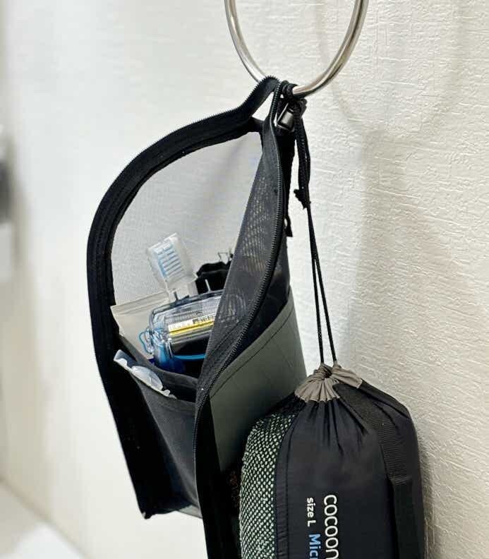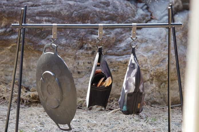 カトラリー以外にも、歯ブラシや洗面道具入れとしても万能。濡れたまま吊るしておくだけで自然乾燥できるのは、撤収準備でバタつくキャンパーの強い味方!