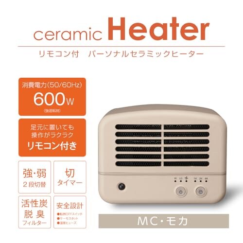 レトロな雰囲気が目を引く、ドウシシャのポータブルヒーター。暖かさは強・弱の2段階で調整でき、タイマー機能やリモコン操作にも対応しているので、使い勝手も良好です。