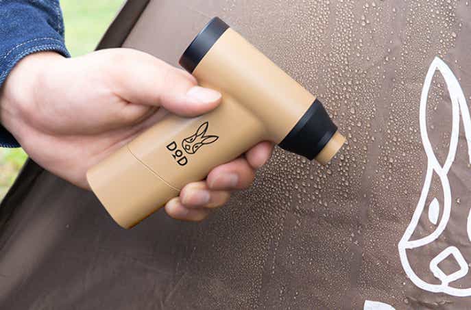 テントやタープについた結露を吹き飛ばしたり、地面から舞い上がった砂をサッと落としたりと、地味だけど面倒な作業を代わりにやってくれる優秀ギアなんです。