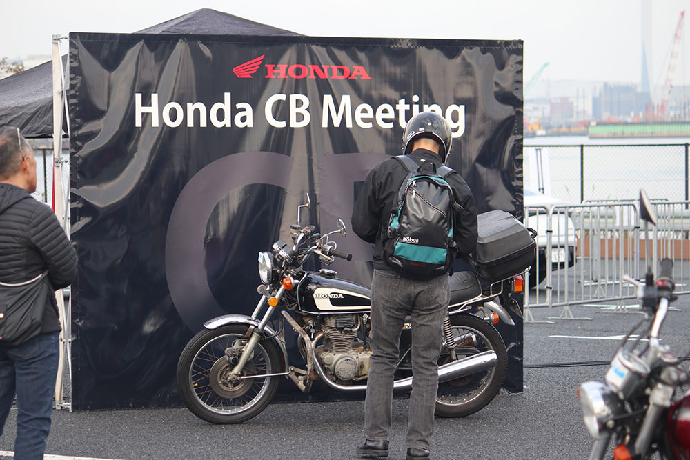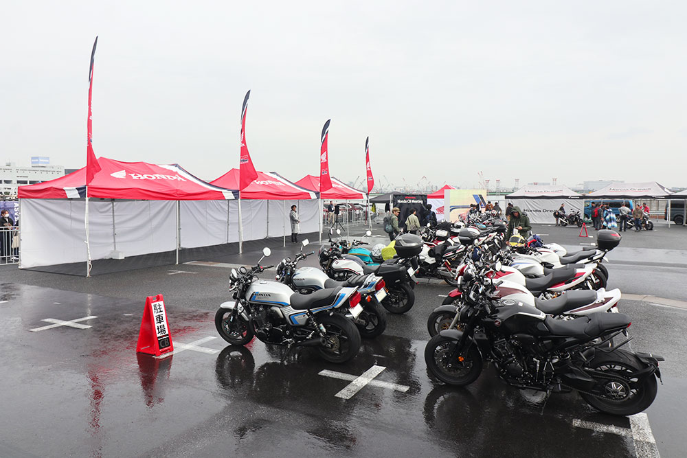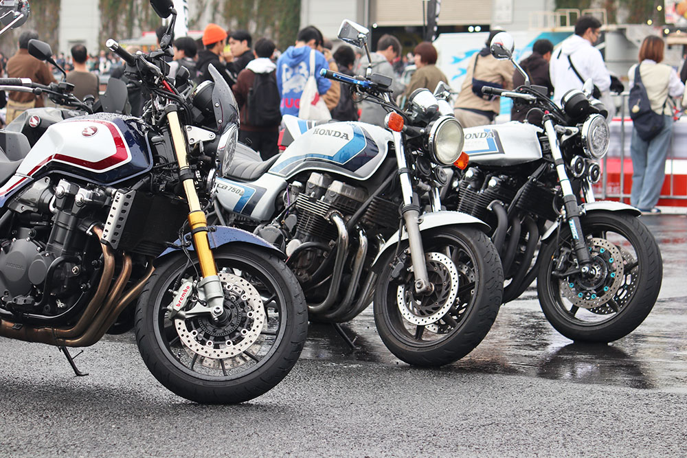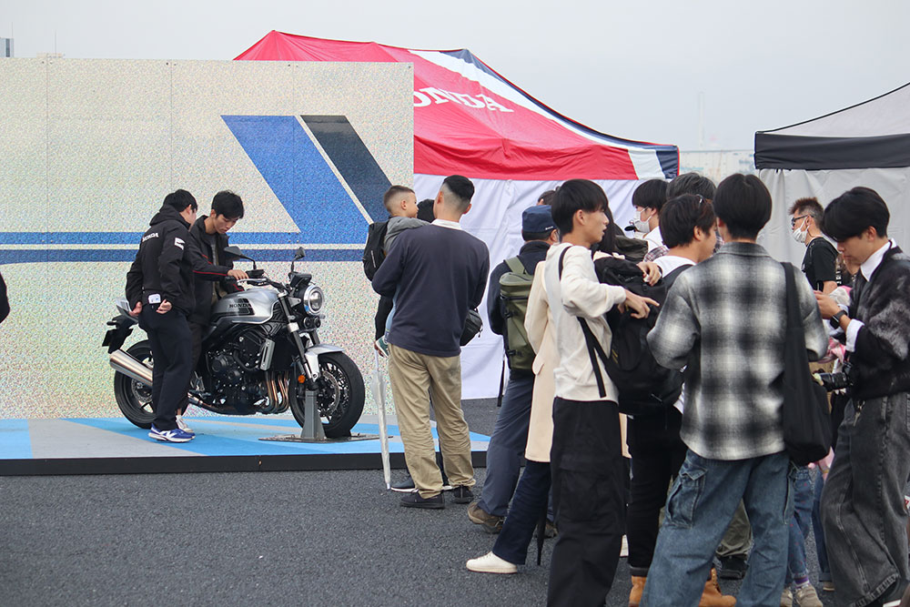 ホンダCBシリーズを愛するライダーが集う「CBミーティング」が、Community Zone(東棟屋外臨時駐車場)で開催されました。このミーティングでの主役は、モビショーのホンダブースでも注目を集めている「CB1000F」です。会場には、ウルフシルバーメタリック(グレーストライプ)とグラファイトブラックのCB1000F、そしてウルフシルバーメタリック(ブルーストライプ)の「CB1000F SE」の計3台が展示されました。フォトブースはもちろん、エンジン始動体験も実施され、来場者はCB1000Fに跨って記念撮影をしたり、スロットルを回してエンジンの鼓動を体感したりと、思い思いに楽しんでいました。