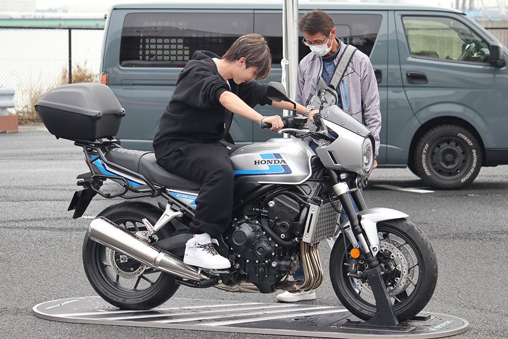 開発プロジェクトにおいてテストライダーを務め、レースにも参加した丸山氏は、日本で最もCB1000Fを知るライダーとして、その魅力を余すところなく語り尽くしました。さらに、坂本氏も驚くサプライズ発表も飛び出しました。