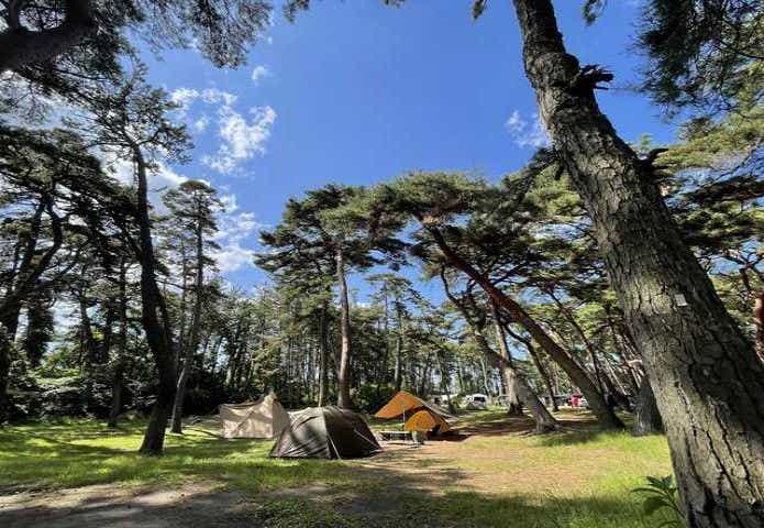 北関東自動車道、東水戸道路・水戸大洗ICから約10分。大洗海岸の目と鼻の先、日本の名松百選にも選ばれた松林に囲まれた落ち着いた雰囲気の「大洗キャンプ場」。
