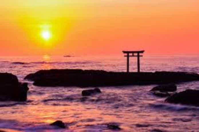 日の出を拝みたいなら、断然ここ! 大洗海岸キャンプ場は神が降臨した場所として世界的にも有名な日の出スポット「神磯の鳥居」までは徒歩15分。