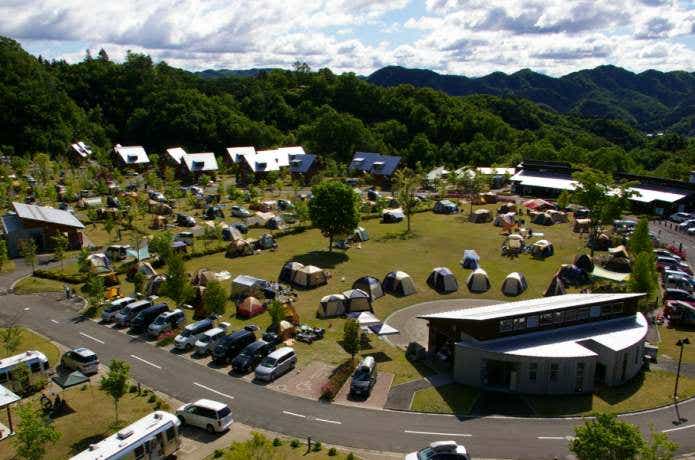 茨城県の北西部、自然豊かな奥久慈大子町の山間部に位置する「大子広域公園オートキャンプ場」。大規模なアスレチックや温水プール、多目的運動場などがある公園に隣接しています。