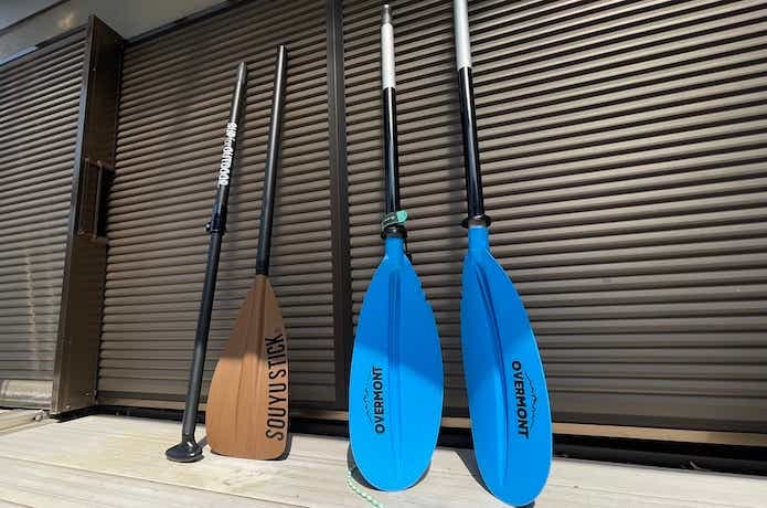 パドルには大きく分けて2種類あり、片側のみパドルが付いたシングルブレードパドルと、両端にパドルの付いたダブルブレードパドルがあります。