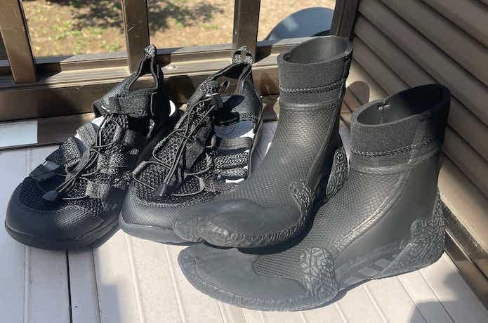 マリンシューズは水抜けも良く快適で、水面を漂うクラゲ対策にもなるのでおすすめです。