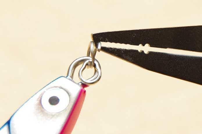 ルアーのフック交換でスプリットリングを開ける際に、先に突起がついた専用のプライヤーが必要です。