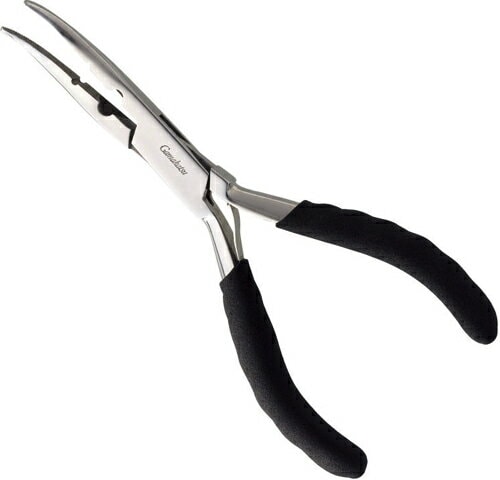 握りやすいカーブハンドルで、スプリットリングの交換やPEラインのカット、フックの調整もラクラクです。