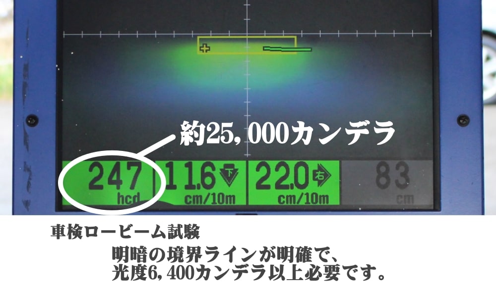 - ロービーム:最低基準値6,400カンデラに対し約25,000カンデラ