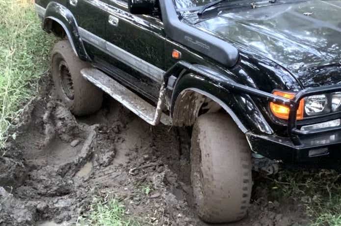 様々な状況がありますが、“間違えてせまい道に入り込み、ちょっと広くなったスペースで方向転換しようとしたら、地面がぬかるんでいてスタック”などがありがちなパターン。