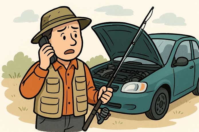 「ロードサービスが来てくれてエンジンもかかったし、さあ釣りに行くぞ!」と安心するのは、ちょっと待ってください。